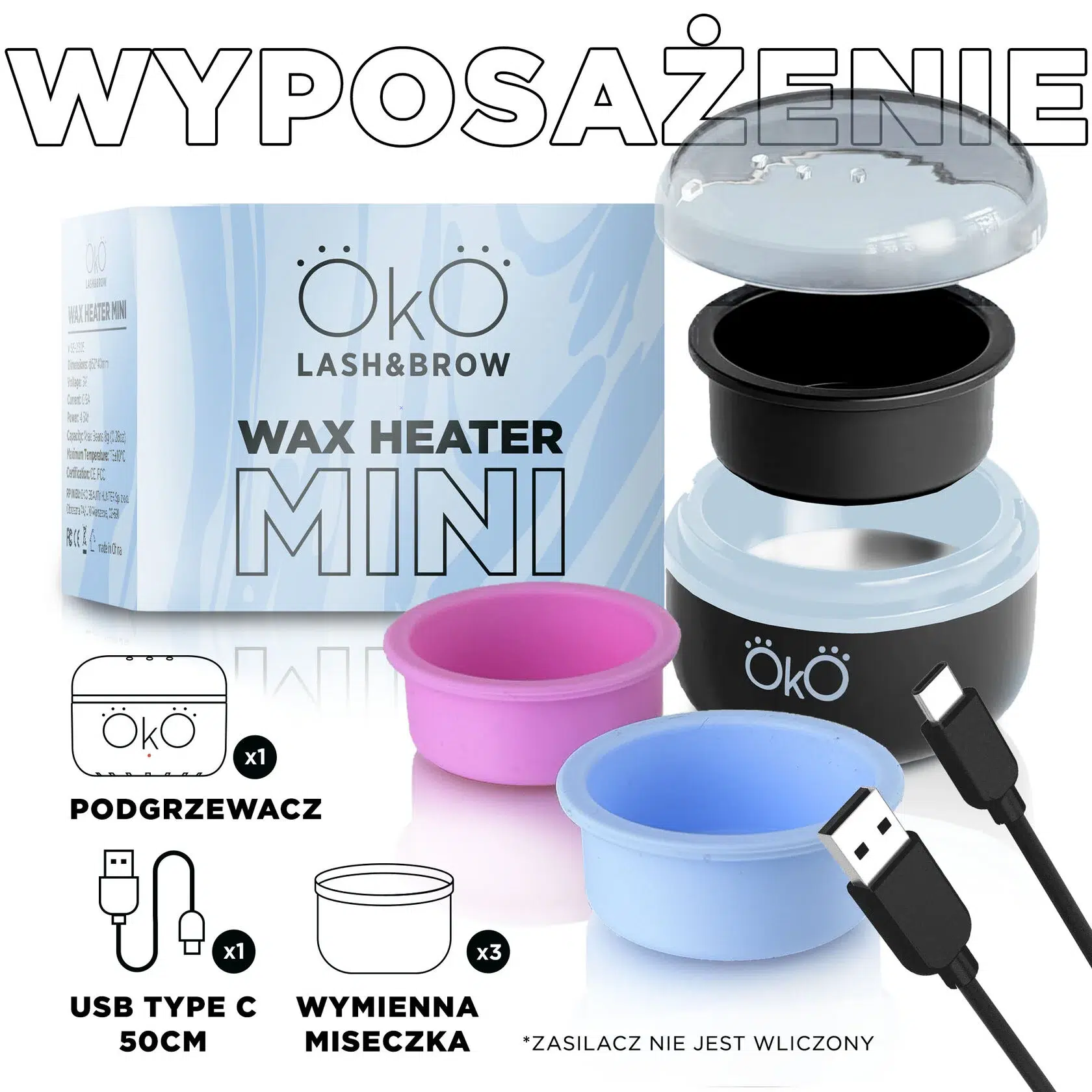 Podgrzewacz do wosku OKO jest naprawdę miniaturowy – objętość miseczki do topienia wosku to zaledwie 8 g, a 3 wymienne silikonowe miseczki w zestawie pozwolą na pracę z woskami o różnych typach i teksturach. Niewielka ilość wosku nagrzewa się znacznie szybciej i już po 5-6 minutach wosk jest całkowicie gotowy do użycia.
